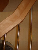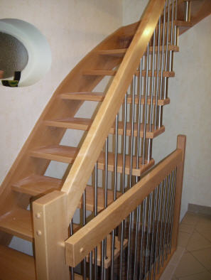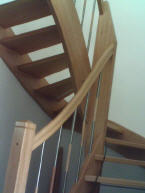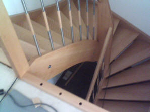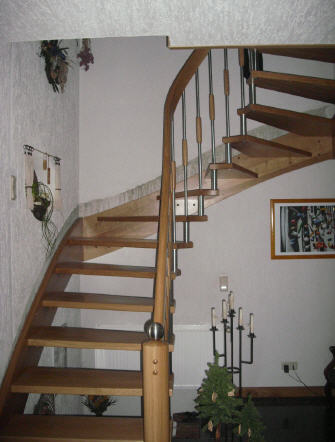 halbgewendelte Holzwangentreppe, Buche, Geländerstab: Edelstahl/Buche