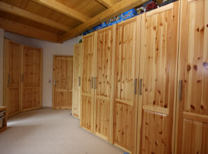 Schlafzimmerschrank- und Eckschrank in massiver Kiefer