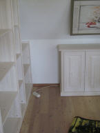 Regalwand und Anrichte: Fichte massiv in Antikweiß behandelt